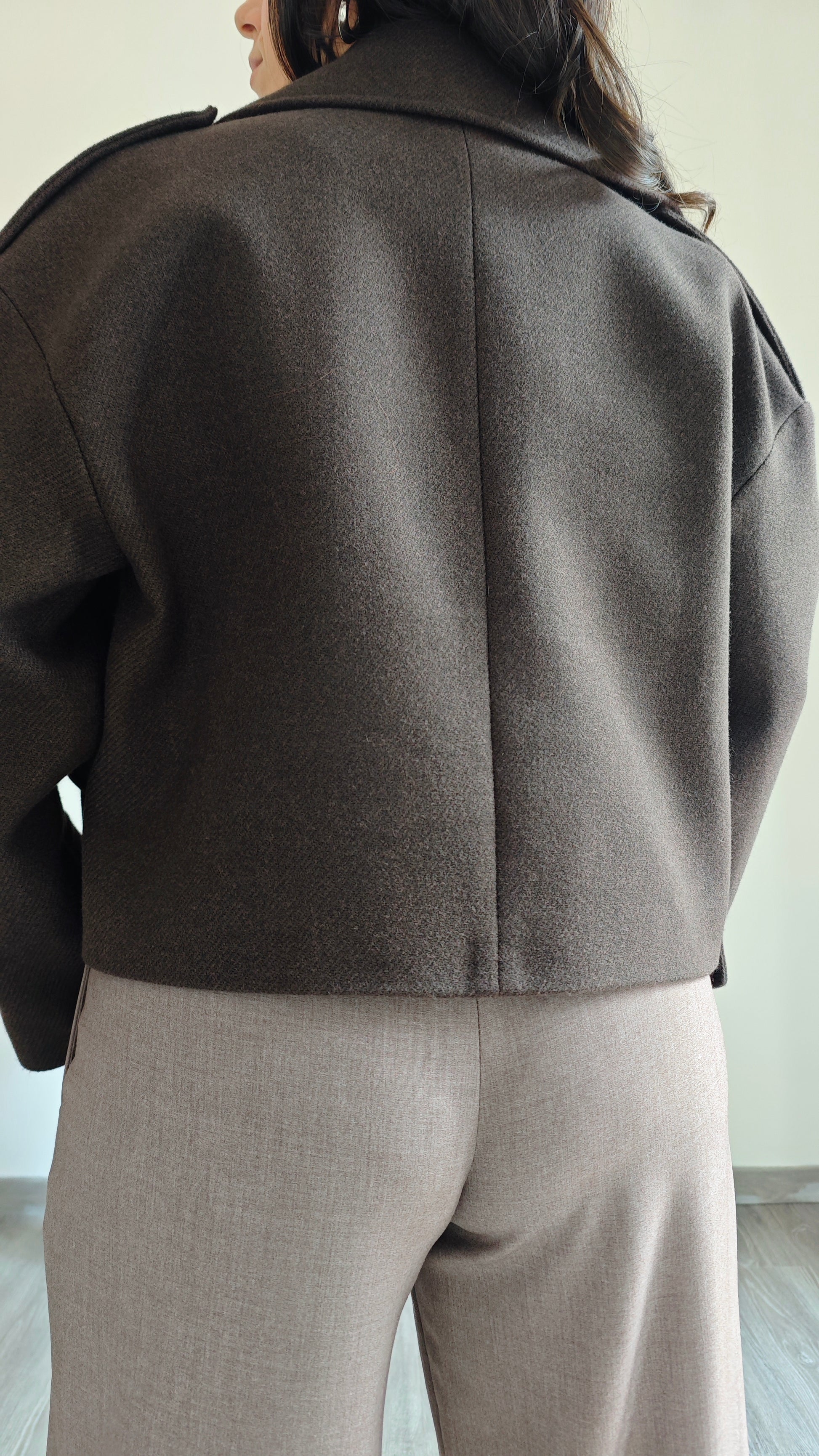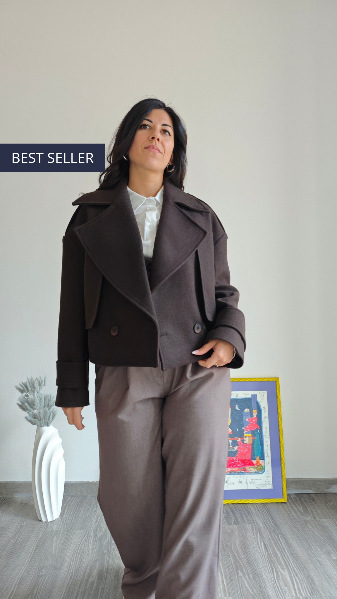 Questo Cappotto corto doppio petto di taglio oversize è la scelta perfetta per un look elegante e alla moda. Realizzato con cura in Italia, questo cappotto è sinonimo di qualità e stile. Il suo taglio oversize è pensato per offrire un fit comodo e rilassato, ma sempre con un tocco di classe.