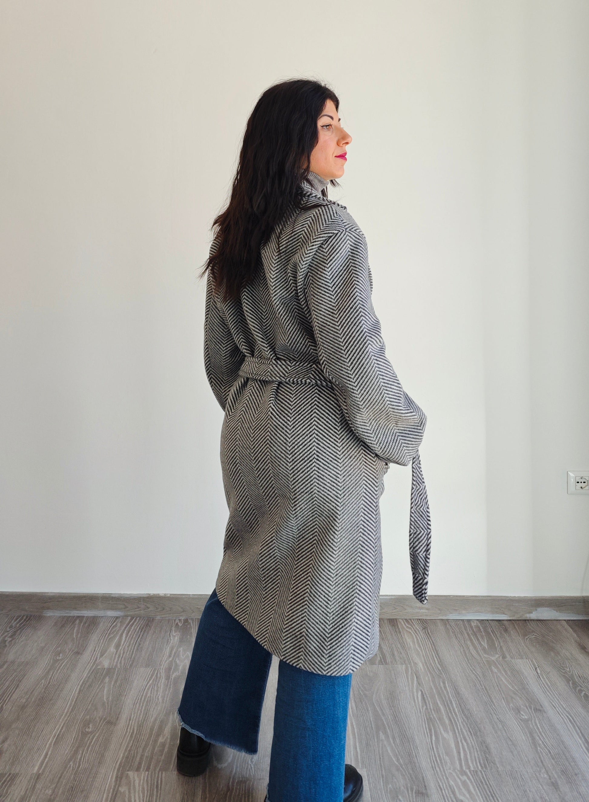 Cappotto Oversize con fusciacca e fantasia herringbone -30%