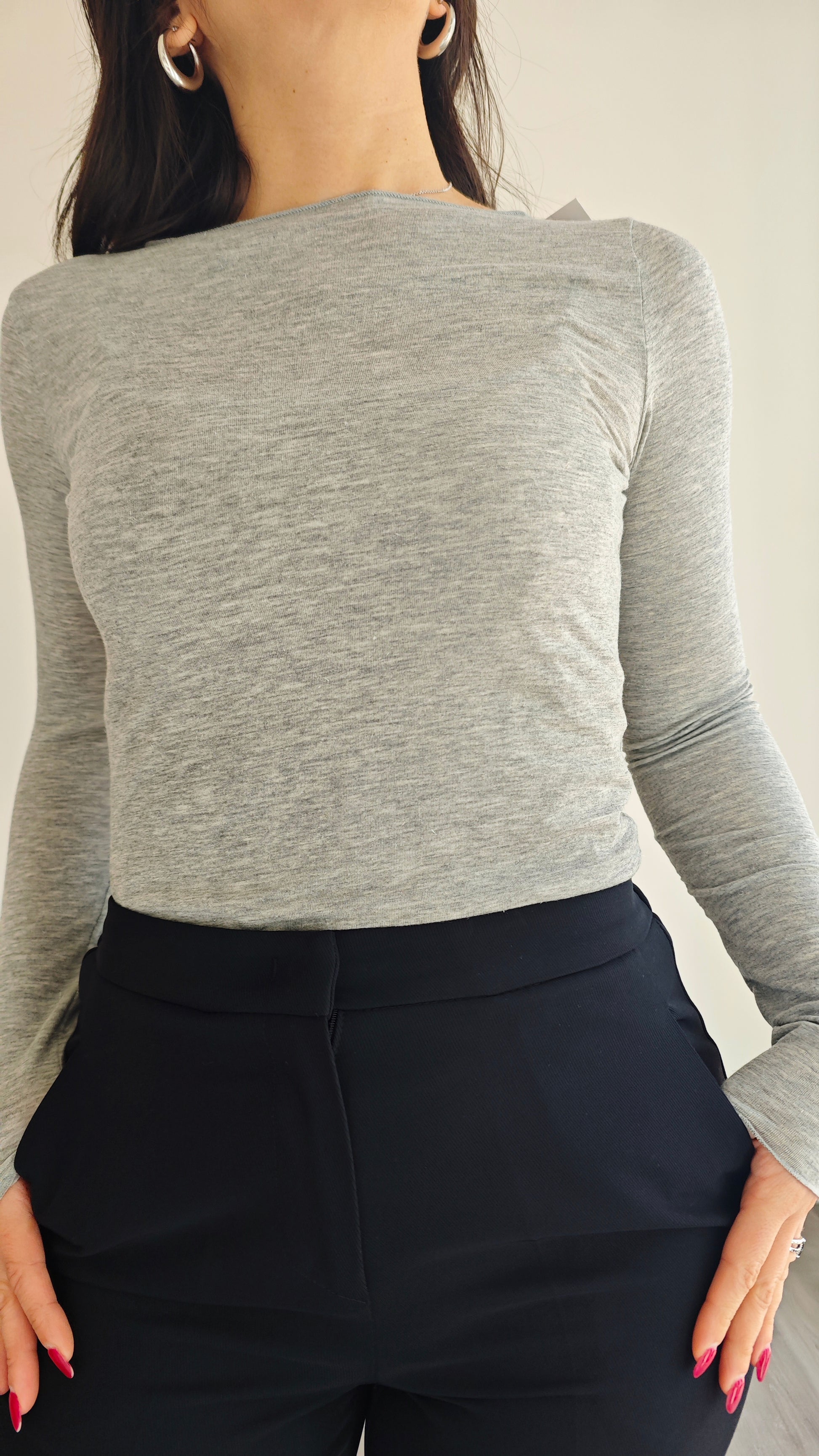 Questa maglia manica lunga ultralight in misto cashmere è perfetta come sotto giacca o cardigan. Il suo morbido tessuto e il filamento in lurex la rendono ideale per un look elegante e confortevole. Realizzata in Italia con materiali di alta qualità.