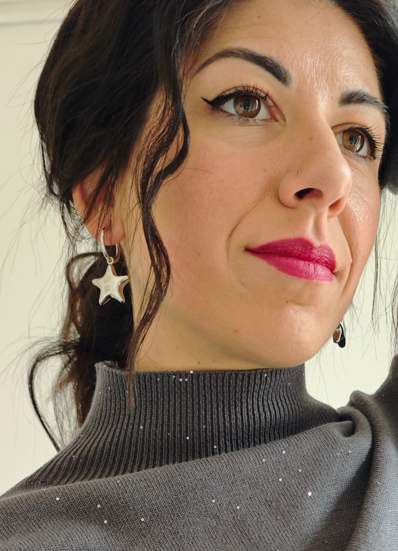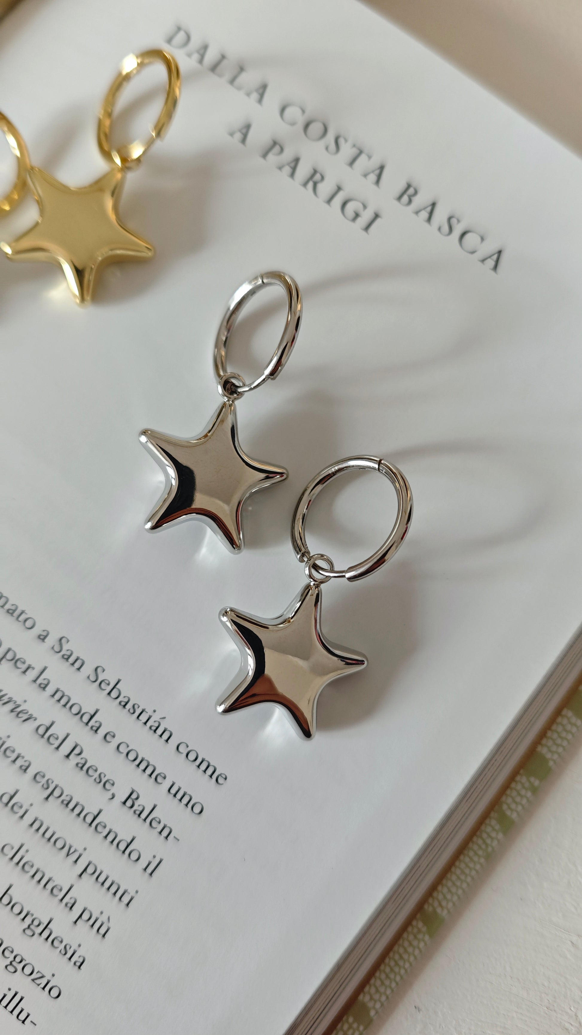 Gli orecchini cerchio con pendente a forma di stella sono un accessorio elegante e di tendenza. Questi orecchini aggiungeranno un tocco di luce e stile al tuo look. Perfetti per un'occasione speciale o per il look di tutti i giorni. Dona un tocco di stile al tuo outfit con questi orecchini unici.